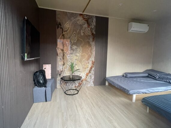 Phòng Nghỉ Luxury Container cổ điển có diện tích rất rộng rãi với 45m2 và ban công thoáng mát. Phòng gia đình 2 hướng sân vườn có tới 3 giường, với mỗi giường đều có size 1m4x2m, có thể ngủ thoải mái 2 người lớn một giường. Với một phòng nghỉ có diện tích rộng rãi và nhiều giường ngủ như thế này, sẽ rất thích hợp cho các gia đình đông người lựa chọn lưu trú, hoặc một nhóm bạn khi muốn cùng nhau tận hưởng từng giây phút nghỉ dưỡng và vui chơi.